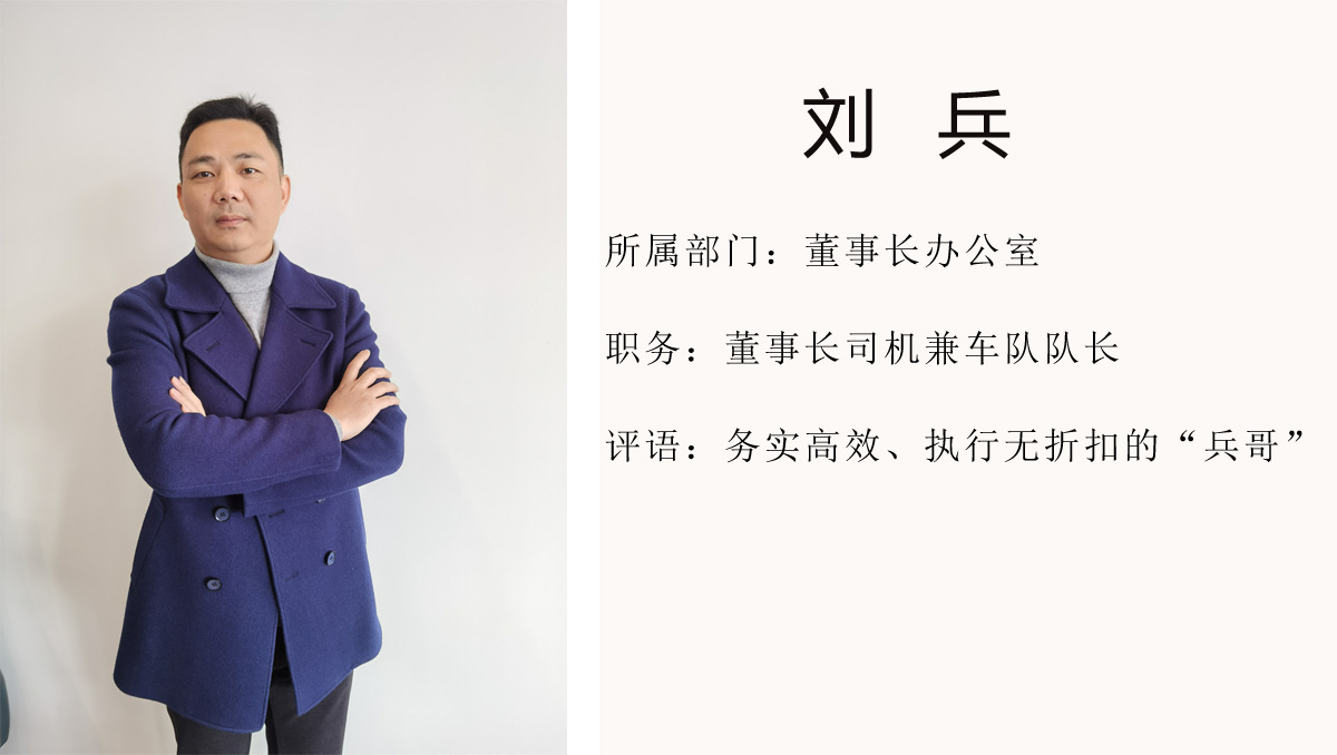 劉兵,2017年10月1號入職天祥集團(tuán)擔(dān)任董事長司機(jī)兼車隊(duì)隊(duì)長一職,負(fù)責(zé)董事長用車、車隊(duì)管理工作。在為公司服務(wù)的四年多時(shí)間里,他每天都是兢兢業(yè)業(yè),勤勤懇懇對待每一件工作。在擔(dān)任車隊(duì)隊(duì)長的崗位上,他積極主動(dòng)的完善了車輛管理制度,為公司二十余輛汽車的維修、保養(yǎng)、保險(xiǎn)、事故處理等做了系統(tǒng)化流程管理優(yōu)化,保障了公司的用車安全。他盡忠職守,以公司為家,不僅很好的完成了本職工作,還承擔(dān)起了公司許多重要接待工作,在公司同事們愛稱呼他為“兵哥”。