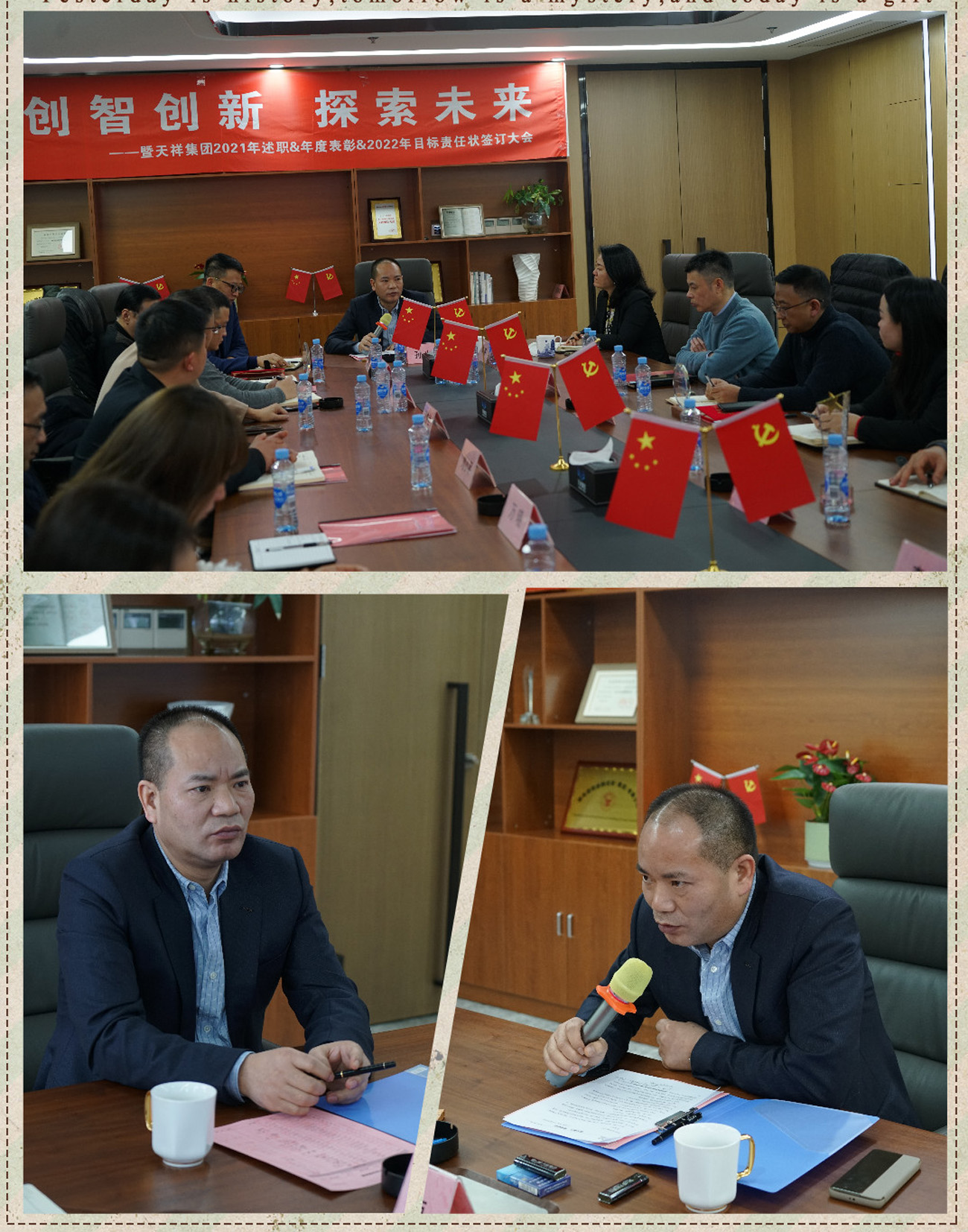 歲月不居,時節(jié)如流,告別了極不平凡的2021年,我們迎來了全新的2022年。1月24日,天祥集團2021年度述職、年度表彰暨2022年度目標(biāo)責(zé)任狀簽訂會在集團總部召開。在董事長孫光福先生的帶領(lǐng)下,各子公司、各職能中心負責(zé)人及年度優(yōu)秀個人、優(yōu)秀團隊代表參與了本次會議。