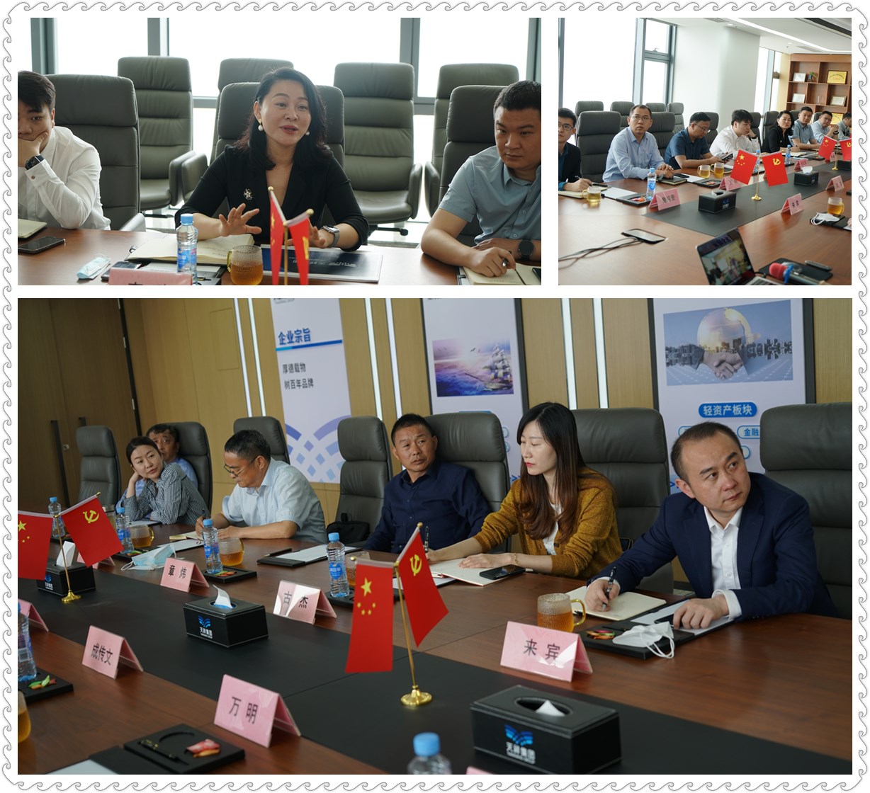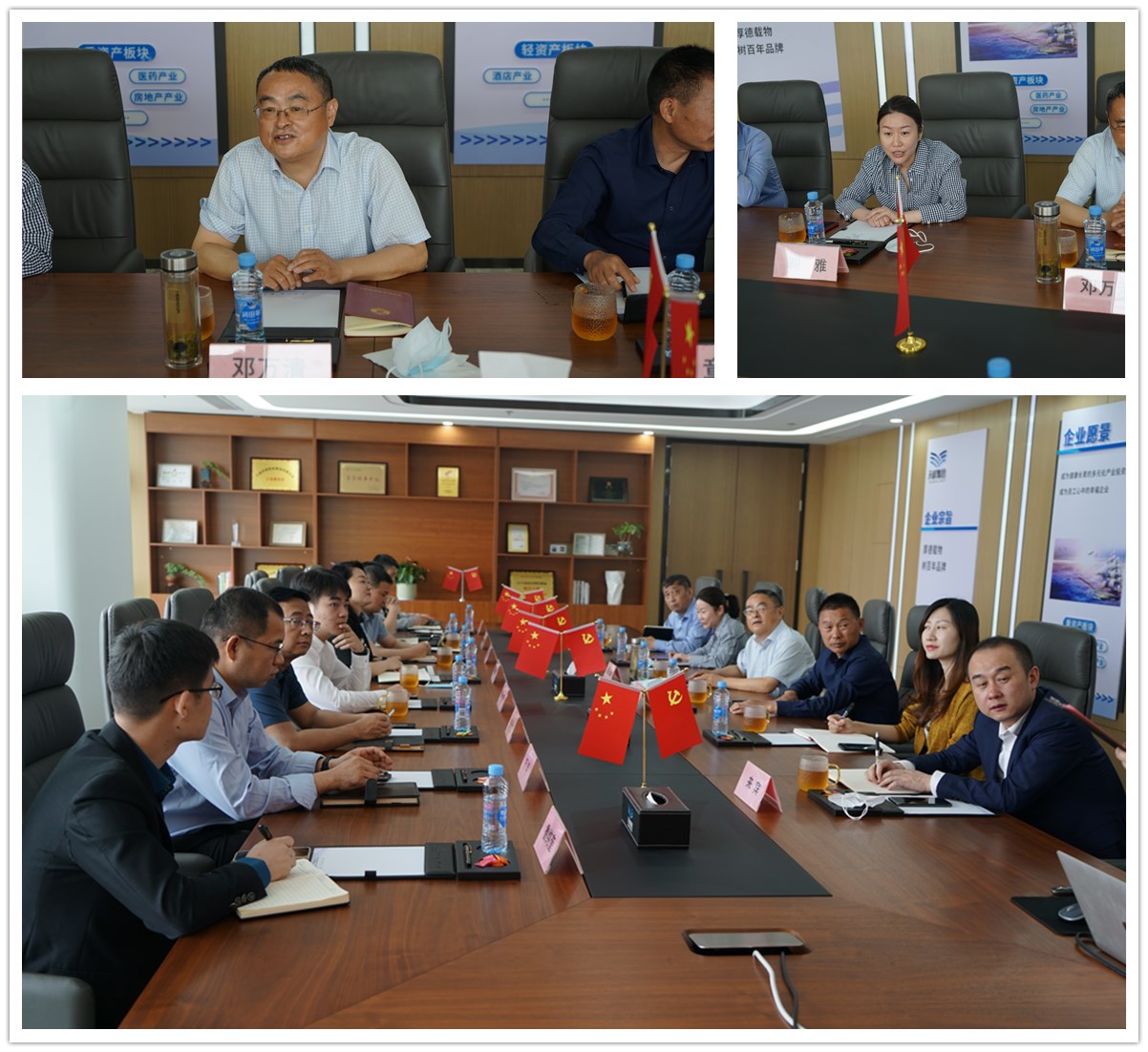 李璐總裁對(duì)鄧副主席、鞠董事長(zhǎng)的到來(lái)表示熱烈的歡迎,并就天祥集團(tuán)的產(chǎn)業(yè)布局、企業(yè)文化、投資方向、投資相關(guān)業(yè)務(wù)及金融發(fā)債業(yè)務(wù)等做了介紹,威鍵實(shí)業(yè)常務(wù)副總杜彬就桃花源筑.養(yǎng)老項(xiàng)目做了詳細(xì)匯報(bào)。