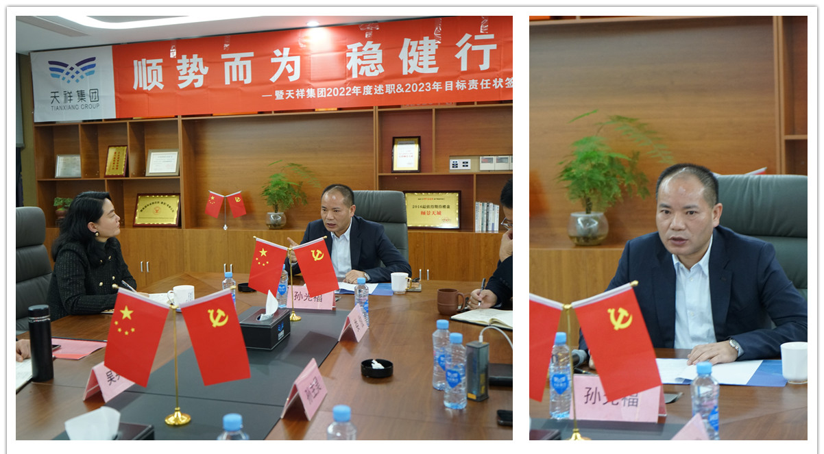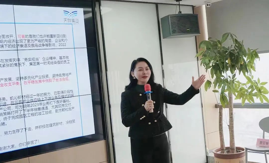 會議伊始,集團各單位負責人就2022年度整體經(jīng)營情況作總結(jié)匯報,并詳細闡述了2023年度工作方向及戰(zhàn)略目標。隨后,總裁李璐就全集團2022年經(jīng)營情況進行總結(jié),并對2023年經(jīng)營安排進行了部署。李總裁指出,2022年,天祥集團上下一心,對抗肆虐的疫情、對抗惡劣的經(jīng)濟環(huán)境,每位天祥人都在發(fā)揮“務實擔當”的企業(yè)精神投入到工作崗位,天祥集團順應國家三農(nóng)振興、建筑新材料、環(huán)境保護的倡導下,努力生存了下去,并積極在建筑新材、冷鏈貿(mào)易中尋找新的突破,打下良好市場基礎。2023年,全年任務艱巨,我們必須勇敢面對,成為那個向光而生的奔跑者。